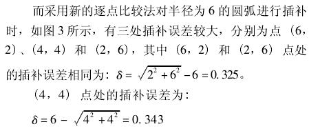 传统的逐点比较法在圆弧插补时具有较大的插补误差,且插补后的轨迹光顺性也很差。文献 提出了一种改进逐点比较法的方法,即不限于每次仅向一个轴输出一个脉冲,如在直线插补中当判别式为 0 时,可同时向 X 轴和 Y 轴输出一个脉冲,但是其未给出较为通用的数学模型,且误差较大。