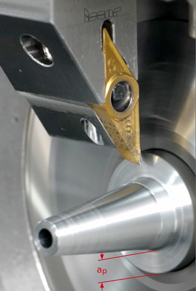 切削深度ap作为另一个切削参数,是指工件已加工表面与未加工表面之间的距离。该距离沿已加工表面的法线方向测量。实际上,这就是切削刃切入工件材料的深度。切削深度常用缩写DOC表示。(图2)