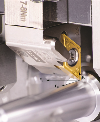 在车削中(图1):径向力Fr从工件旋转轴线径向向外,将车刀推离工件。这种推力效应可能是影响加工精度和表面质量的振动源。轴向力Fa沿纵向平行于旋转轴线,与进给运动方向相反。在车削中,该力也被称为"纵向"力。