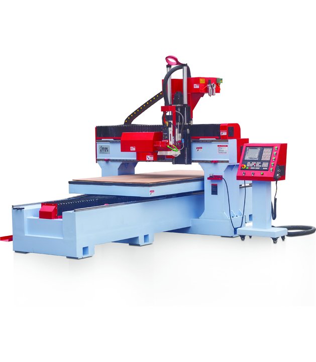 适用行业 广告行业、迷你字、发光字、斜边字制作、广告字标识标牌雕刻等 家具行业、实木家俱、实木门、装饰材料、橱柜门、电脑桌、麻将桌、板式家俱、办公家具、木制音箱、木制厨具等各种家俱加工等。 功能特性 本机体优化设计适合多元化复杂性产品加工或多样加工机型,用途广泛:可雕刻、钻孔、切割、铡铣、导边等,主要用于切割与镂铣; 本款机型的各项机械、电器部件均为国际顶尖产品。日本的伺服驱动系统,台湾工控操作系统,意大利原装进口HSD自动换刀电主轴;八工位圆盘自动换刀,换刀时间仅需8秒,效率高,人性化操作简便; 属重切削型加工机型;台面真空吸附。整板加工不需再锯切,即可上线切削,可省略模具的制作;最大加工速度可达15米——25米/分。空程速度到可达80米/分 新增功能 多合一型数控雕刻机加工中心,可快速切换8把不同的刀,能人性化操作,比主轴钻孔更加高效方便,便捷,减少了换刀程序。该数控加工中心适合多元化复杂性产品加工,可提高产品加工的精度与美观,以切割和镂铣为主,还可以进行雕刻、钻孔、侧铣、侧锯、倒边等。
