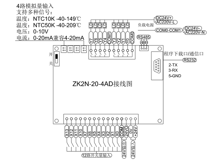 430FX-B: 4AD ,2DA; 2TK温度NTC温度输入0-150度