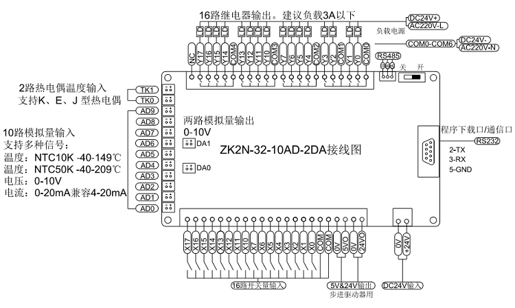 国产板式三菱PLCFX2N-32MR 4AD 10模拟 10温度 PLC工控板 4轴 485