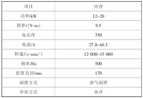 根据调研国内电主轴生产厂商, 依据试验需求及商家技术人员建议, 选用170MD15Y20 型电主轴,其主要参数见表 1。