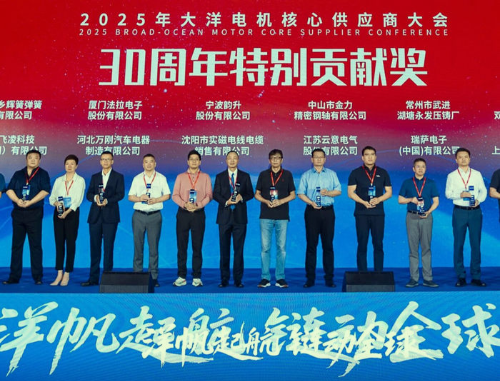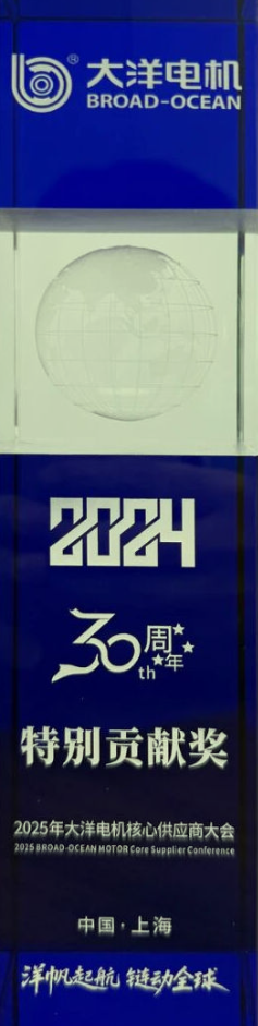 近日,中山大洋电机股份有限公司(以下简称大洋电机)隆重召开2025年度核心供应商大会。本次大会以 “扬帆起航,链动全球” 为主题,会上,大洋电机对2024年度优秀供应商进行了表彰。凭借出色的产品品质、长期稳定的服务表现,恩斯克投资有限公司(以下简称NSK)在1000多家供应商的激烈竞争中脱颖而出,赢得大洋电机高度认可,荣膺 “30周年特别贡献奖”。