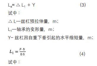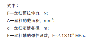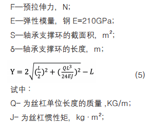 影响进给系统精度稳定性的因素主要有丝杠热变形、丝杠自重下垂变形、轴承的变形量等因素。因此结构支撑轴承受轴向载荷,故轴向需要拉伸长度 LA 为: