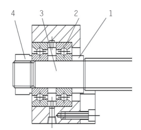 1- 配磨套,2- 角接触球轴承,3- 丝杠,4- 锁紧螺母