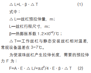 通常,如果丝杠需要采用预拉伸的结构,订购时需要向代理商确定预拉伸结构及拉伸尺寸,丝杠生产商将在导程中补偿预拉伸量,从而保证丝杠在拉伸后能够在正确的导程值上工作。机床在装配进给装置时,无论哪种预拉伸结构,都需要在细微调节和检查工具下才能对丝杠做出正确预拉伸。如果配做的零件不合格或调节预拉伸出现较大弯矩,都无法达到正常的预拉伸量。对进给系统的精度和刚度也造成影响。