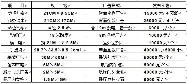(会刊规格为130MM×210MM,广告费一律预收一次性付清;因故不能参展企业,可直接选择会刊及展场广告宣传) 。