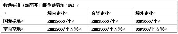 1.3mx3m国际标准展位包括:三面围板、楣板、一桌两椅、两盏射灯、220v电源插座(其他展具及服务产生的费用由客商自理)。