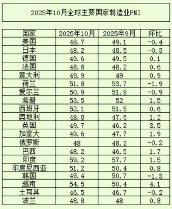 数持平,全球经济延续缓慢恢复态势——2025年10月份全球制造业PMI为49.7%