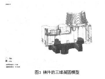 利用华铸CAE凝固模拟分析软件验证并完善工艺方案,模拟凝固过程的液相分布符合工艺要求,如图3所示。