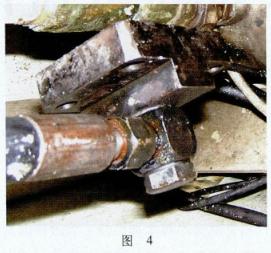 为论证铜套不密封还是缸盖油嘴孔槽不密封,公司进行了细致入微的试验研究。重新设计改造一套手动封堵装置,将充液试验方式改为充气试验方式,重新制作充气接头装置(见图4和图5)。