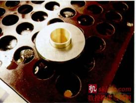 油嘴孔铜套部位如图1所示,油嘴孔加工和油嘴孔割槽全部采用进口加工中心和专机完成,加工尺寸和位置精度完全达到产品设计要求。