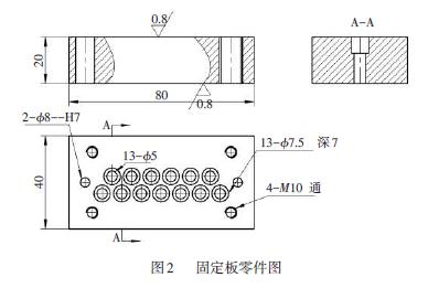 冲孔凸模与固定板(见图2)上相对应的台阶孔(孔位置由线切割加工保证)配磨装配好后,在平面磨床上进行磨削加工。