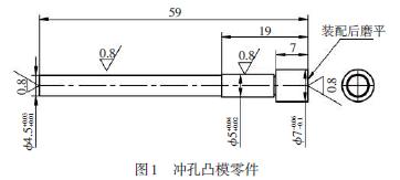 冲孔凸模(见图1)的一般传统加工工艺:两端打中心孔粗车→一夹一顶精车至放磨余量→热处理→研磨中心孔→外圆磨床磨削工作部分直径至要求精度→配磨冲孔凸模颈部与固定板到过渡配合程度→与固定板装配后磨平顶部→平面磨床磨削刃口部分。