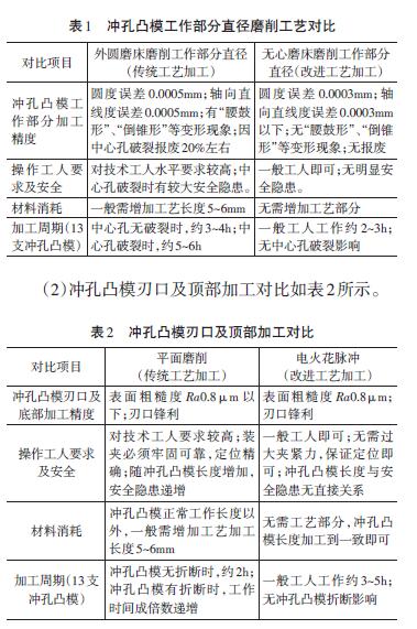 (1)冲孔凸模工作部分直径磨削工艺对比如表1所示。