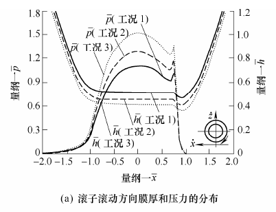 3.3 转速对航空发动机主轴滚子轴承油膜厚度和压力的影响