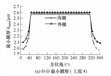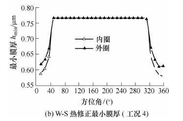 为了更准确地验证热效应对最小膜厚的影响,基于拟动力学分析对其他三种工况下航空发动机主