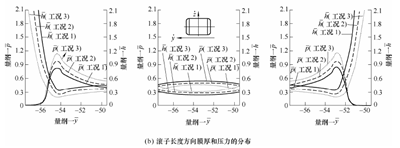 3.2 载荷对航空发动机主轴滚子轴承油膜厚度和压力的影响