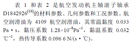 表1 航空发动机主轴滚子轴承D1842926 材料参数和几何参数
