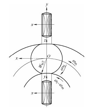 通过拟动力学分析实现航空发动机主轴承整体相互作用到接触微区工况的转化。图2 是球与内外圈滚道的接触运动示意图。