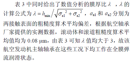 3.1 航空发动机主轴滚子轴承最小膜厚计算比较