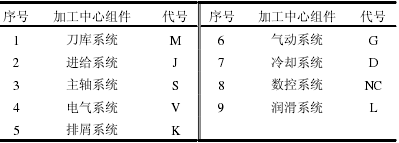 表2 加工中心组件及代号