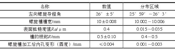 经过多年的加工,零件质量稳定,尺寸参数在规定的公差区间合理分布(见附表),外观质量美观,可靠地解决了薄壁类套筒零件螺旋导程槽的加工和质量问题,为该类零件的加工提供了新的方法和技巧。该类零件无论是军用、民用还是应用于其他领域,都很普遍。