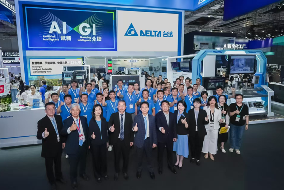 1. 台达以“AI赋新 GI永续”为主题亮相第二十五届中国国际工业博览会,集中展示创新研发的绿色产品及解决方案。主管与参展同仁合影。