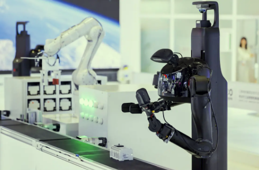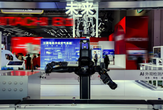 据鹿明机器人CTO曹俊亮介绍,在本次“AI+未来工厂”展区,三菱电机呈现了一条集成鹿明具身智能机器人Lumos MOS的人工智能外观检测柔性产线,真实还原了典型工业场景。该产线依托基于深度学习的AI算法,能够精准识别产品表面的微小缺陷,结合机器人自主决策与执行能力,实现“看得清、判得准、动得快”的闭环智能作业。