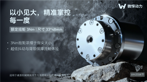 近日,专注新一代高功率密度关节模组的动力科技公司——微悍动力,对外正式发布三款新品:超紧凑型WHJ03、大负载中空型WHJ120以及WHJ48V宽压系列关节。此次发布标志着微悍动力在机器人核心零部件领域完成关键布局,以覆盖从轻量精密到重型作业的全场景动力解决方案,加速高性能机器人在消费、商用及工业领域的规模化落地。