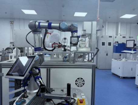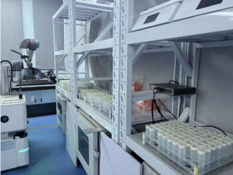 在实验桌前,一名“智能科学家”正抬起结实的机械臂抓取试管,依次走过液体进样台、磁力搅拌台、烘干工作台,进行样品称重、搅拌、离心、烘干……