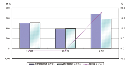 2019年1-3月规上企业营业收入月度完成及同比变动情况见图1。