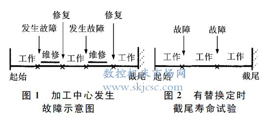 数控机床可靠性评估试验一般为截尾试验,包括:无替换定时截尾试验、无替换定数截尾试验、有替换定时截尾试验和有替换定数截尾试验。经研究发现,有替换定时截尾试验更适合数控机床可靠性评估。