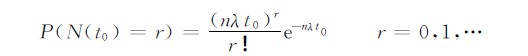 设有n台数控机床进行截尾时间为t0的有替换定时截尾试验,记Ni(t0)为第i台机床在[0,t0]内的失效数,在机床寿命服从指数分布eλ下,可以证明[9]:Ni(t0)服从泊松分布,即Ni(t0)~p(λt0)。又记N(t0)=N1(t0)+N2(t0)+… +Nn(t0)为n台机床在[0,t0]内发生的总失效数,由这n台机床工作的独立性和泊松分布的可加性,可得N(t0)~p(nλt0),即