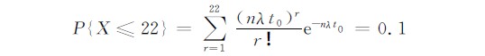 由图3和表1可以看出,给定显著水平α 后,要想使数控机床MTBF的点估计值的置信区间在合理的范围内,就要使数控机床在试验结束时有一定的失效数。例如,假设数控机床的MTBF=1/λ=900h,显著水平α=0.1,若使其置信区间为[630,1329],那么试验结束时失效数应该大于22。由于n台机床总失效数服从泊松分布,所以就要求试验结束时,这n台机床前1~r个失效数出现的概率之和是一个较小的数,即为一个小概率事件,例如,当显著水平α=0.1时,这个数不大于10%,令