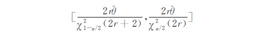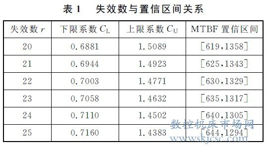 是自由度数为2r的卡方分布的α/2的下侧分位数。可以看出,在平均寿命^θ和显著水平α确定后,数控机床MTBF 的点估计值的置信区间取决于其在截尾时间内的失效数r。令