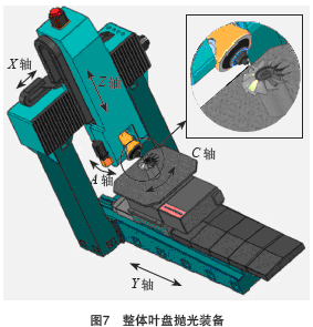 国外在整体叶盘抛光技术方面已经取得了大量的成果,日本较早地将机器人技术应用于整体叶盘抛光中,成功地研制出了抛光加工机器人并投入应用,并且提出了通过GC(grinding center)进行自由曲面抛光的新型工艺,经过技术研究和应用,最终在抛光试验中达到了较高的表面质量,在抛光过程解决了磨削中由于NC误差导致的抛光轨迹误差[28]。
