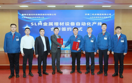 2025年12月30日,济二所属山东纳博自动化有限公司与天津镭明激光科技有限公司“SLM金属增材设备自动化产线”合作签约仪式在济南二机床举行。合作聚焦各领域对增材制造装备、配套辅助设备以及3D打印服务的批量化需求,以“增材”与“智造”的强强联合,推动金属3D打印从“精工制造”迈向“规模智造”,打造3D激光打印智能产线,形成金属增材制造车间级解决方案。据悉,山东纳博公司成立于2025年12月2日,是济南二机床集团的全资子公司,专注于智能制造、工业互联网及数字化转型咨询等领域。