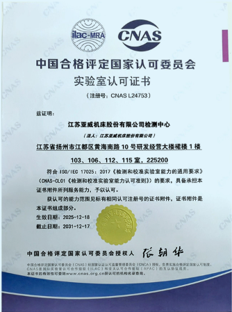 2025年末,江苏亚威机床股份有限公司检测中心顺利通过中国合格评定国家认可委员会(CNAS)评审认证,标志着该公司实验检测能力达到国际互认标准,出具的检测报告将获得全球数十个互认国家的承认,将为高端产品技术开发、质量管控和国际市场拓展提供有力支撑。