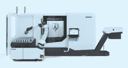 德马吉森精机的CTX beta 450 TC铣车复合加工机床,正副主轴最高转速5000r/min,最大功率36kW/720Nm,铣削主轴标配转速15000r/min,扭矩120Nm,集成了车削、铣削和磨削加工以及测量功能,可实现6面完整加工;标配五轴联动加工,可高精度、高效率完成形状复杂零件。可配置桁架机械手或Robo2Go自动化装置。