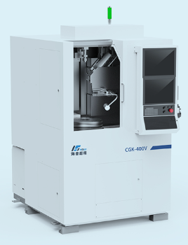 北京海普瑞森的CGK-400V超精密数控光学定心车床,采用天然花岗岩床身和立柱,超精密气体静压转台,直线轴采用高精度直线运动副,高精度光栅尺,一次装夹,可实现光学轴线自动定心及上、下端面,外圆的同时加工。镜片顶端至镜座端面高度误差<2μm,镜片光学轴线与镜座轴线对心精度<3μm,镜片光学轴线与镜座轴线角度偏差3″,镜座圆度、圆柱度2μm。配合相应耦合透镜后,可测量任意曲率半径的镜片。用于镜片光学轴线与镜座几何轴线偏差的自动检测和加工修正。
