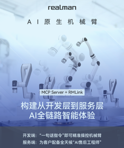 双AI引擎协同发力,睿尔曼正重新定义机械臂的使用标准,让专业开发、售后服务更安全高效。以MCP Server打通开发侧的“一句话指令”控制链路,以RMlink服务平台补齐运营侧的“AI售后工程师”服务闭环,为全球开发者与企业用户构建起从开发端到售后端的全周期AI智能体验。