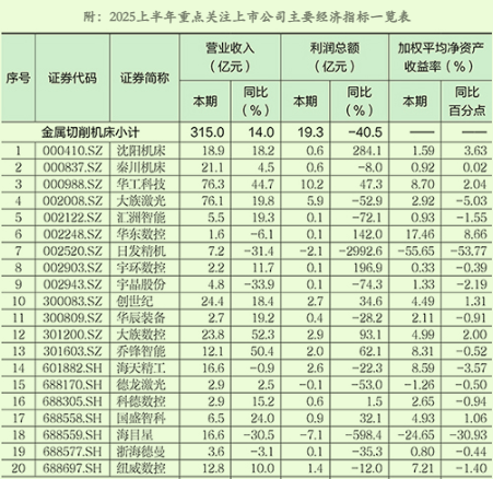 2025上半年机床工具行业上市公司运行情况