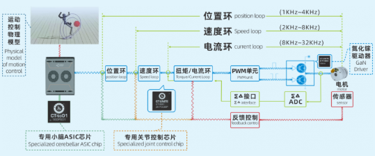 该芯片通过高度集成EtherCAT、CAN-FD及专有低延时通信接口,在10x10毫米的极小尺寸内将通信环路延时压缩至5毫秒以内。此举在硬件层面终结了以往多模块拼凑的复杂架构,更在与CT-1906 GaN驱动器协同后,实现了伺服驱动器体积缩减50%的系统级突破。直面机器人执行器“高性能必牺牲体积”的传统困境,这标志着机器人动力系统正式从“分立”迈向“高度集成”,为机器人本体的紧凑化、敏捷化发展扫清了核心障碍。
