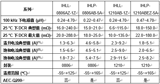 IHLL-0806AZ-1Z、IHLL-1210AB-1Z、IHLP-0806AB-5A和IHLP-1210ABEZ-5A系列电感器现可提供样品并已实现量产,供货周期为10周。