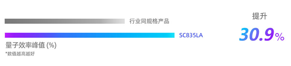SC835LA和SC1635LA采用了BSI技术和掩膜拼接工艺,实现了感光性能的显著优化。例如,在可见光波段下,SC835LA黑白模式的量子效率峰值(QE peak)可达95.8%,较行业同规格竞品提升约30.9%。凭借优化的感光性能,产品在低照度环境下仍可输出细节清晰的高质量画面,为工业检测系统的全天候运行提供可靠、稳定的图像数据支持。