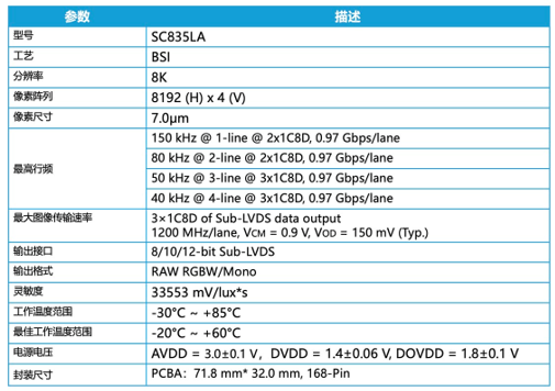 SC835LA和SC1635LA提供黑白(1/2/3/4线)与彩色(4线RGBW)双版本输出模式,能够满足客户的多样化应用需求。