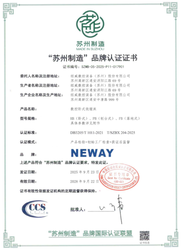 近日,纽威数控拳头产品数控卧式铣镗床顺利通过“苏州制造”品牌认证,成为践行“质量卓越、智能生产”理念的典型产品。
