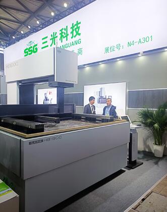 中走丝机床在大型压铸、塑胶模具加工和3D金属打印件基板切割,以及核电、航空航天一些大尺寸零件加工上的应用场景越来越多,部分厂家快速响应这一新的市场需求,开发出大行程、重载并能进行大厚度零件加工的中走丝机床。苏州三光展出的HB1600中走丝机床,X、Y轴行程1600mm×1200mm,最大切割工件尺寸2400mm×1540mm×1000mm,最大工件重量8000kg,工作液槽自动升降,极大方便了重型、大尺寸工件装夹与加工。昆山瑞钧FL8560中走丝机床,X、Y轴行程850mm×630mm,按照重载机床结构设计,可满足最大重量5000kg工件的加工。杭州华方数控机床有限公司HF500AM中走丝机床现场演示10mm×10mm方形1000mm厚零件切割,切割零件表面平整,尺寸误差及腰鼓度<0.06mm,切割效率≥75mm2/min。泰州市江洲数控机床制造有限公司展出一台为用户特殊定制的中走丝机床,X、Y轴行程1000mm×630mm,最大切割高度1500mm,机床带四连杆机构锥度切割装置,最大切割锥度±30º,满足用户高尺寸桶状带锥度内腔的零件精密加工需求。